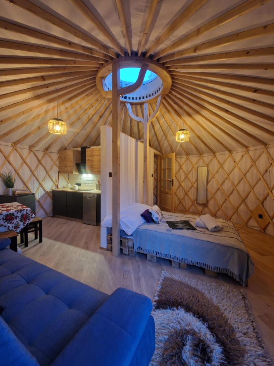 W luksusowym namiocie zapewniono aneks kuchenny z lodówką, zmywarką i czajnikiem. W luksusowym namiocie zapewniono ręczniki i pościel.