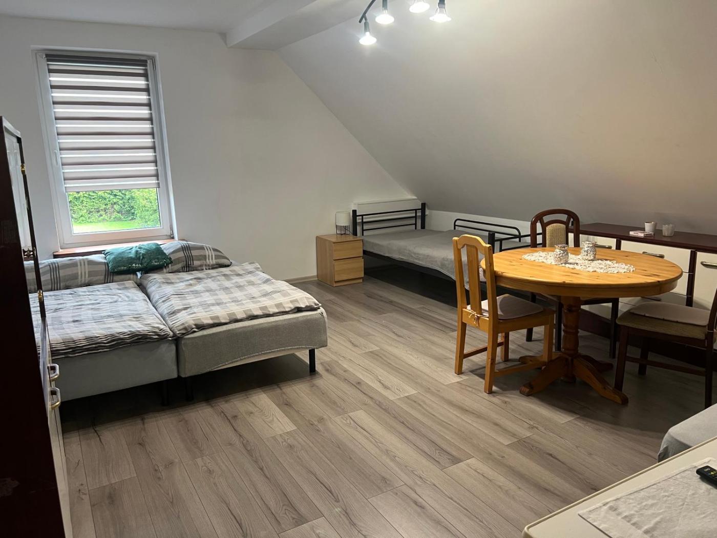 Pokój Czteroosobowy. Boasting a terrace with ancourtyard view, this quadruple room also features a dining area and a flat-screen TV. The unit has 4 beds. Pokój Czteroosobowy - 4 osobowy. Powierzchnia pokoju ok.: 20 mkw.