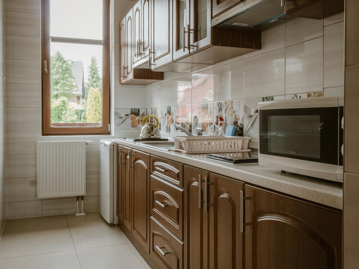Pokój czteroosobowy z widokiem na góry. The quadruple room provides heating, as well as a private bathroom featuring a shower. Meals can be prepared in the well-fitted kitchen, which comes with a stovetop, a refrigerator, kitchenware and an electric kettle. The quadruple room features parquet floors, a seating area with a flat-screen TV, a dining area, a wardrobe as well as mountain views. Pokój Czteroosobowy - 5 osobowy. Powierzchnia pokoju ok.: 35 mkw. ;